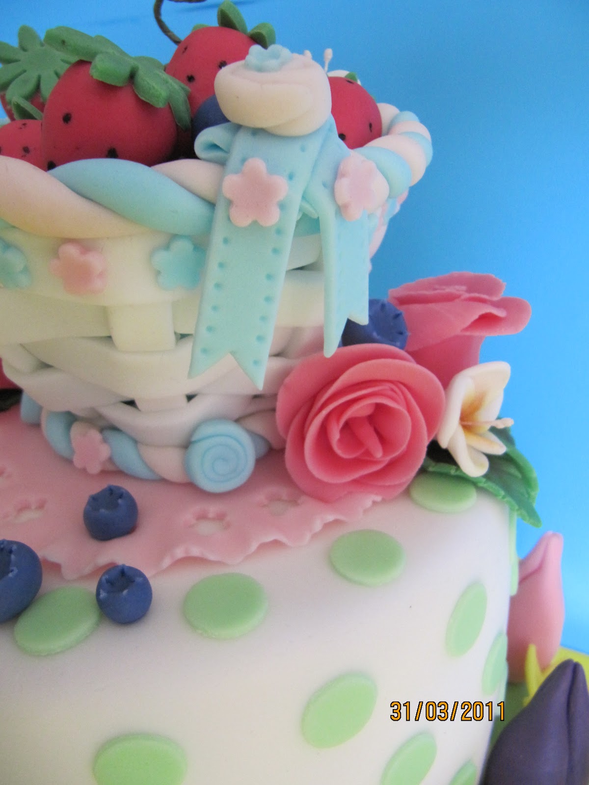 Но да се върна към тортата.Малкият Мишо ставаше на 1 годинка и аз много исках да му подаря една торта, още повече че рождения му ден съвпадна и с кръщенето му.За това и тя е в много нежни бебешки цветове.Идеята за дизайна ми дойде от костюмчето, с което беше облечен моя Симеон на кръщенето си.